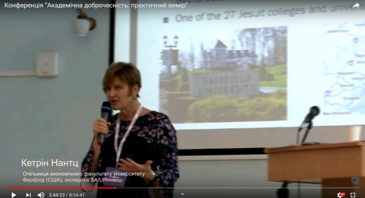 Експерти проекту укріплення академічної доброчесності в Україні SAIUP Девід Шмідт і Кетрін Нантц працюють у єзуїтському Університеті Ферфілду (штат Конектикут, США). За їх участі проект SAIUP стартував у 2016 році та визначив основи нової державної політики академічної доброчесності. Про це стало відомо з виступу професорки економіки Кетрін Нантц на конференції “Академічна доброчесність: практичний вимір”, організованій за підтримки Міністерства освіти і науки України та Посольства США в Україні.